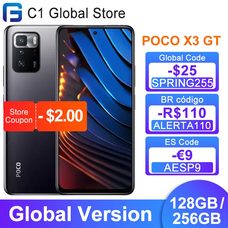 Смартфон POCO X3 GT глобальная версия, 5G дюйма, NFC, 128 ГБ256 ГБ, Восьмиядерный процессор MTK Dimensity 1100, тройная камера 64 мп, 67 Вт турбозарядка, 120 Гц