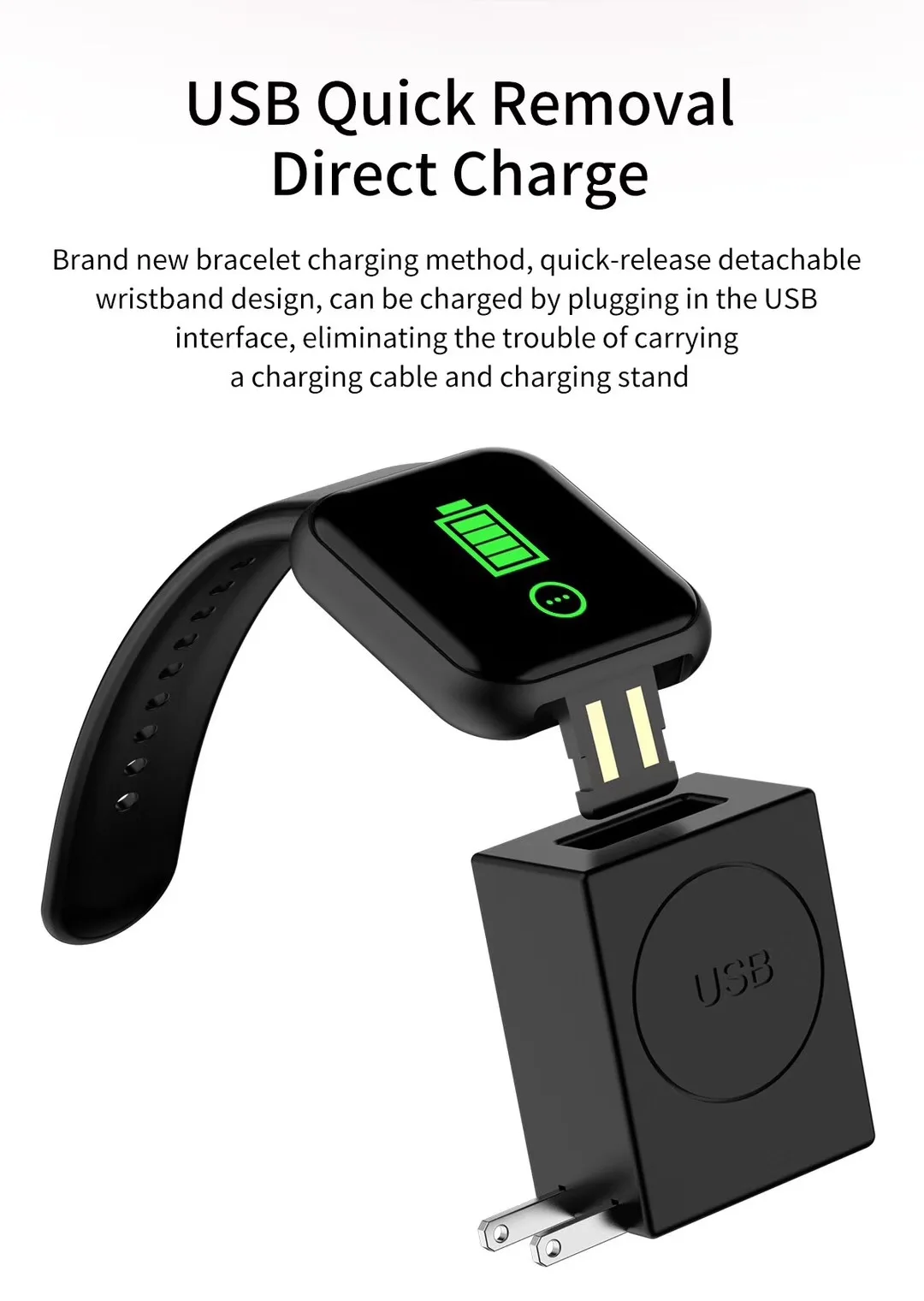 Примечание: Уважаемые покупатели, для этих часов не требуется зарядный кабель, его можно заряжать непосредственно через зарядную головку или usb-интерфейс (зарядная головка в комплект не входит)Часы нельзя носить для плавания или купания. Только экран водонепроницаемый