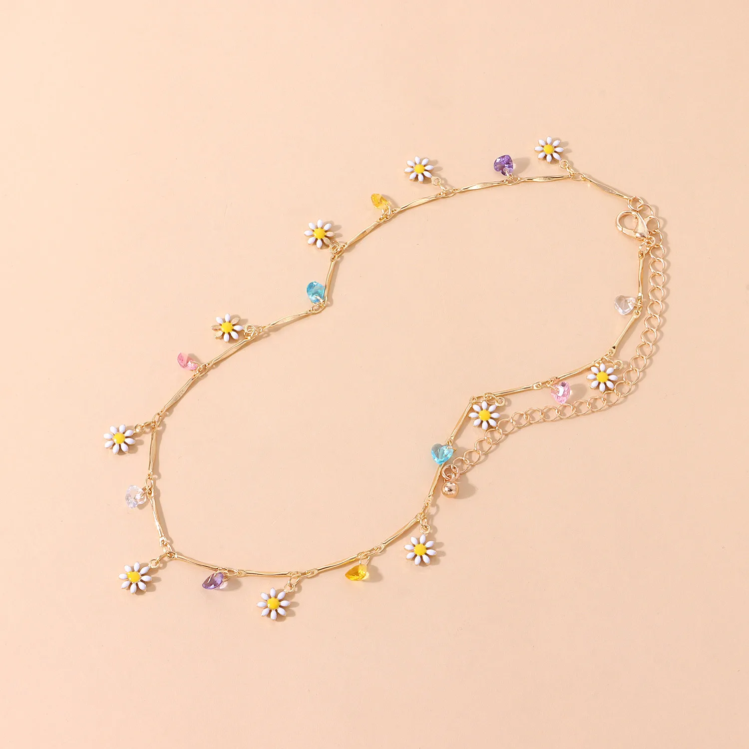 Ожерелье-чокер женское, короткое, с цветами маргариток, цветными бу...