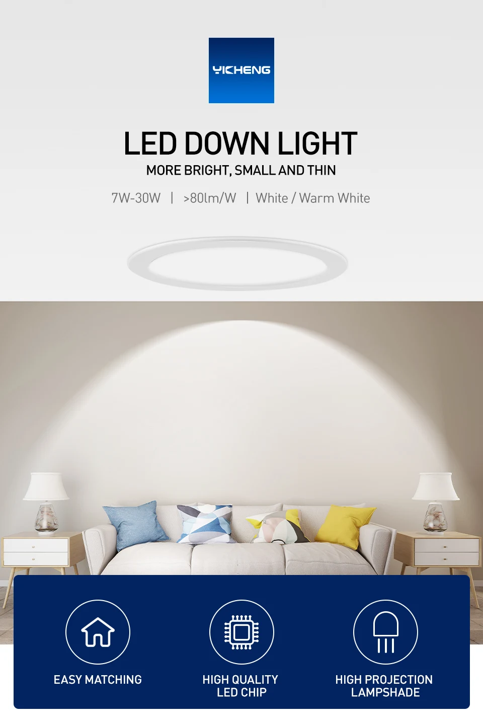 Ультратонкий Светодиодный светильник 7 Вт 12 Вт 18 Вт 24 Вт 30 Вт, светодиодный светильник высокой яркости, Круглый Встраиваемый светодиодный потолочный светильник, коммерческий светильник