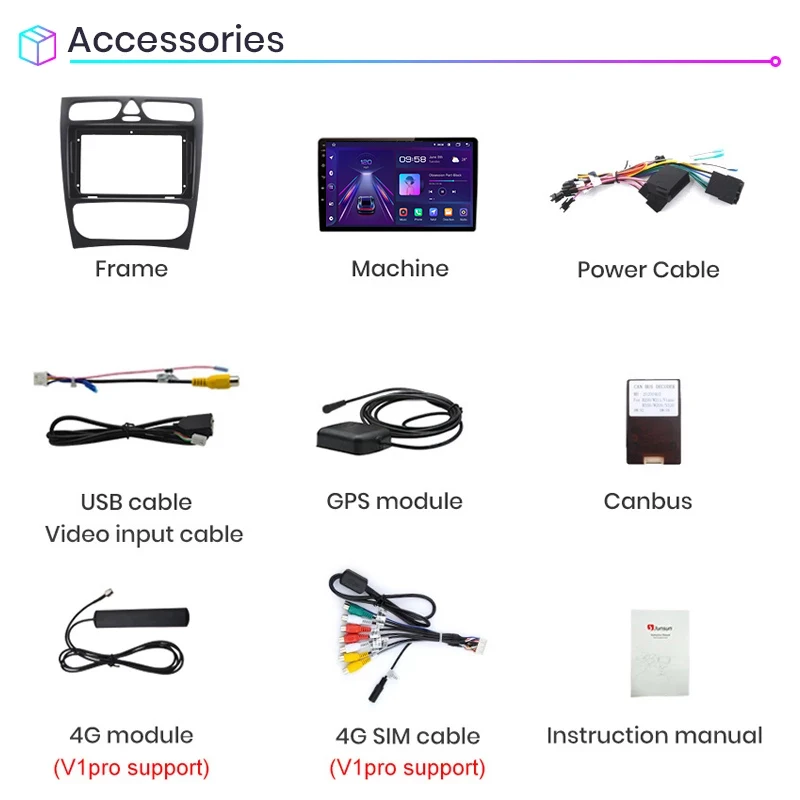1. Штифт-штифт: Кабель питания Junsun radio' является штифтом для штифта, прост в установке;2. Встроенный Carplay/ Android Auto: Поддержка версии V1Pro, просто используйте кабель телефона, подключите его, стабильный и простой в использовании; (V1 поддерживает только Android Auto, но нужно покупать; V1C не поддерживает)3. Поддержка подголовника: только поддержка версии Junsun V1;