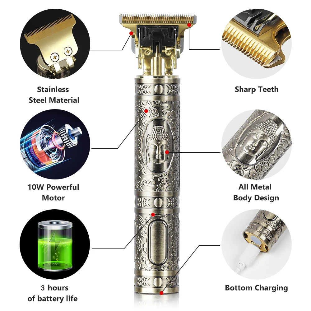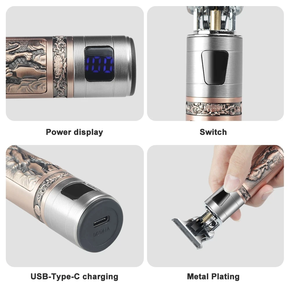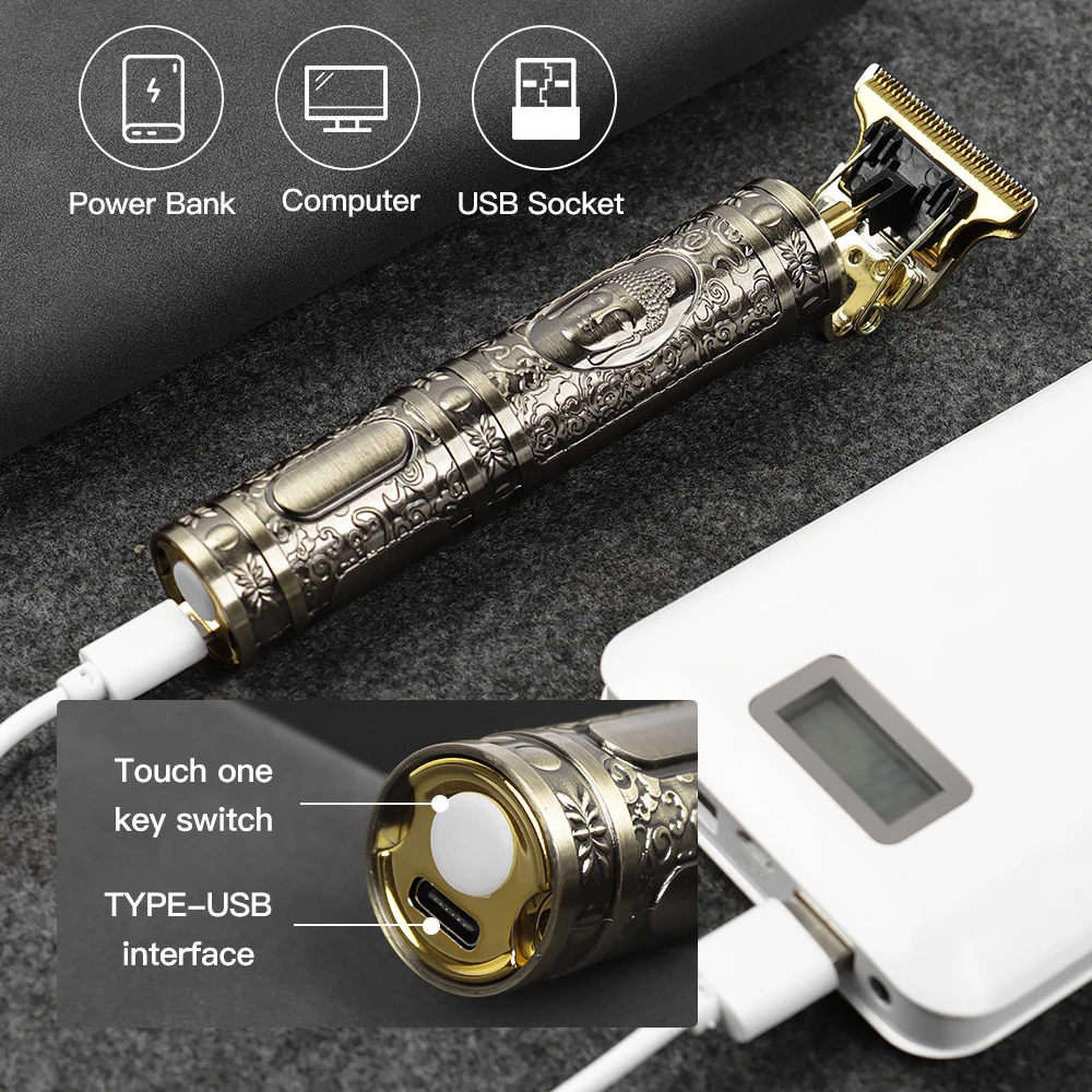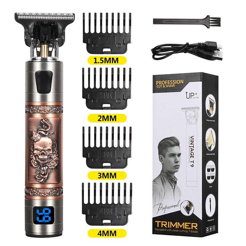 Машинка для стрижки волос T9 Мужская электрическая, USB-триммер для бритья, перезаряжаемая профессиональная машинка для бороды, 0 мм
