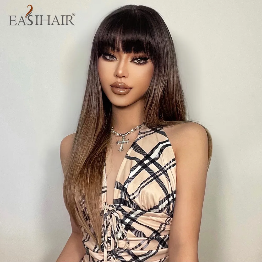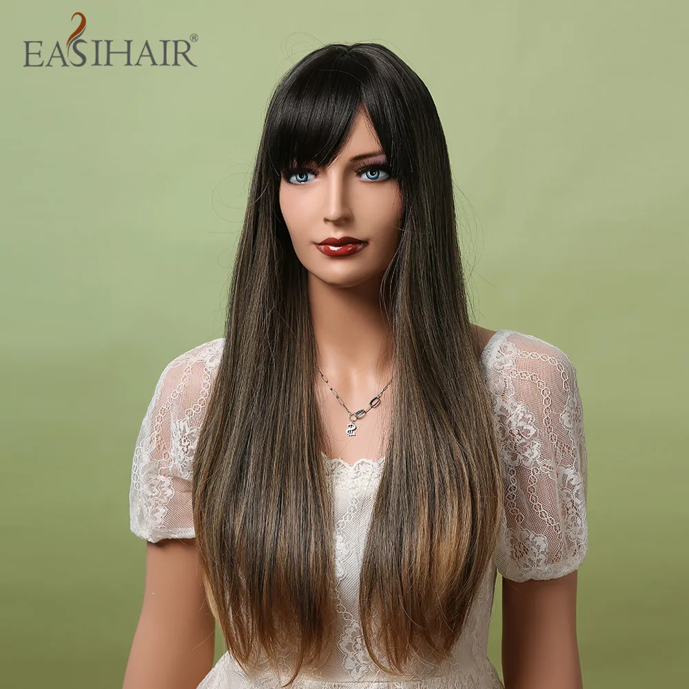 Парик длинный синтетический с Омбре, с челкой, для косплея