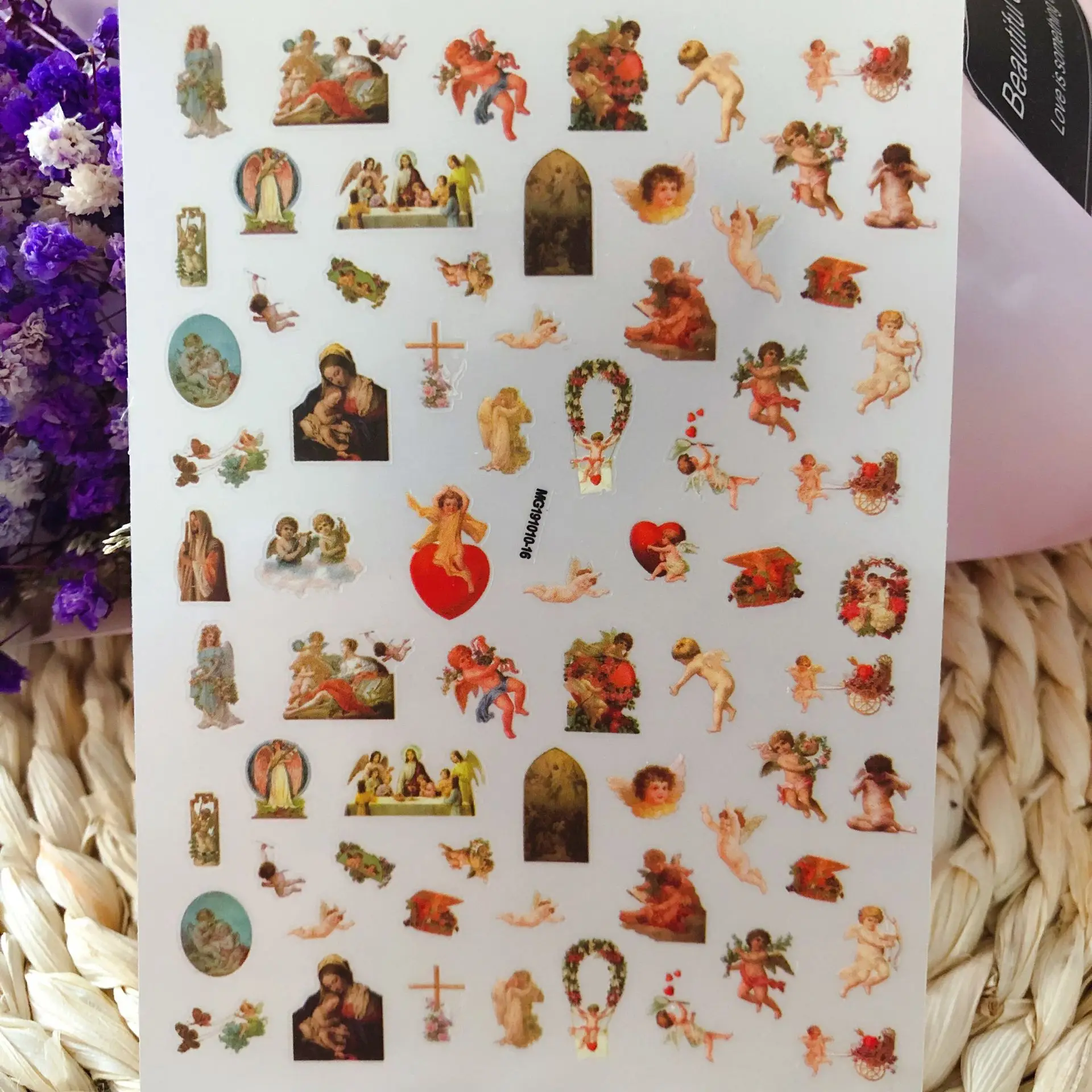 Наклейки для ногтей с ангелом, Дева Мария, Амур, переводные наклейк...