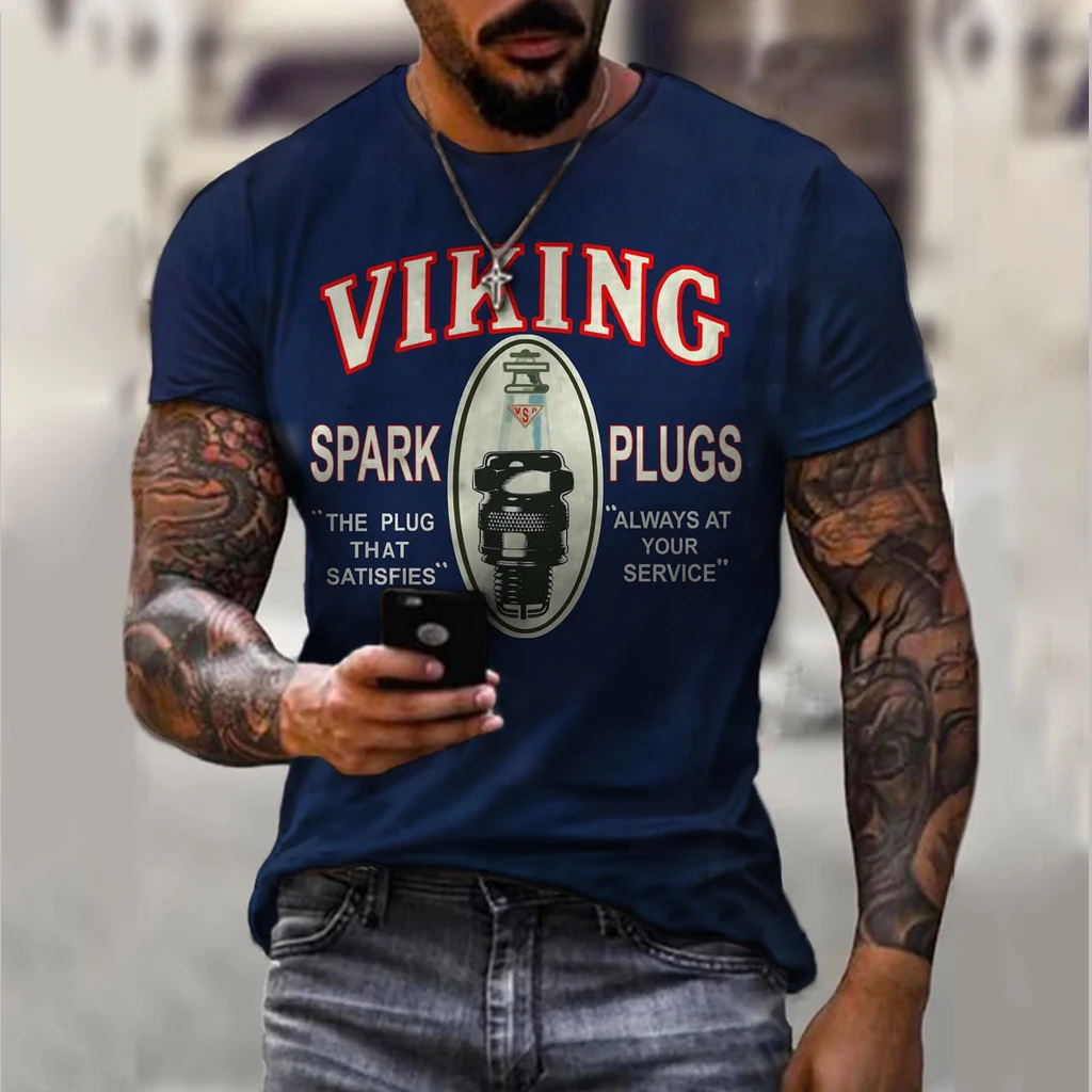 Мужская футболка с коротким рукавом, футболка в европейском и американском стиле ретро с 3D-принтом свечи зажигания, Новинка лета 2021