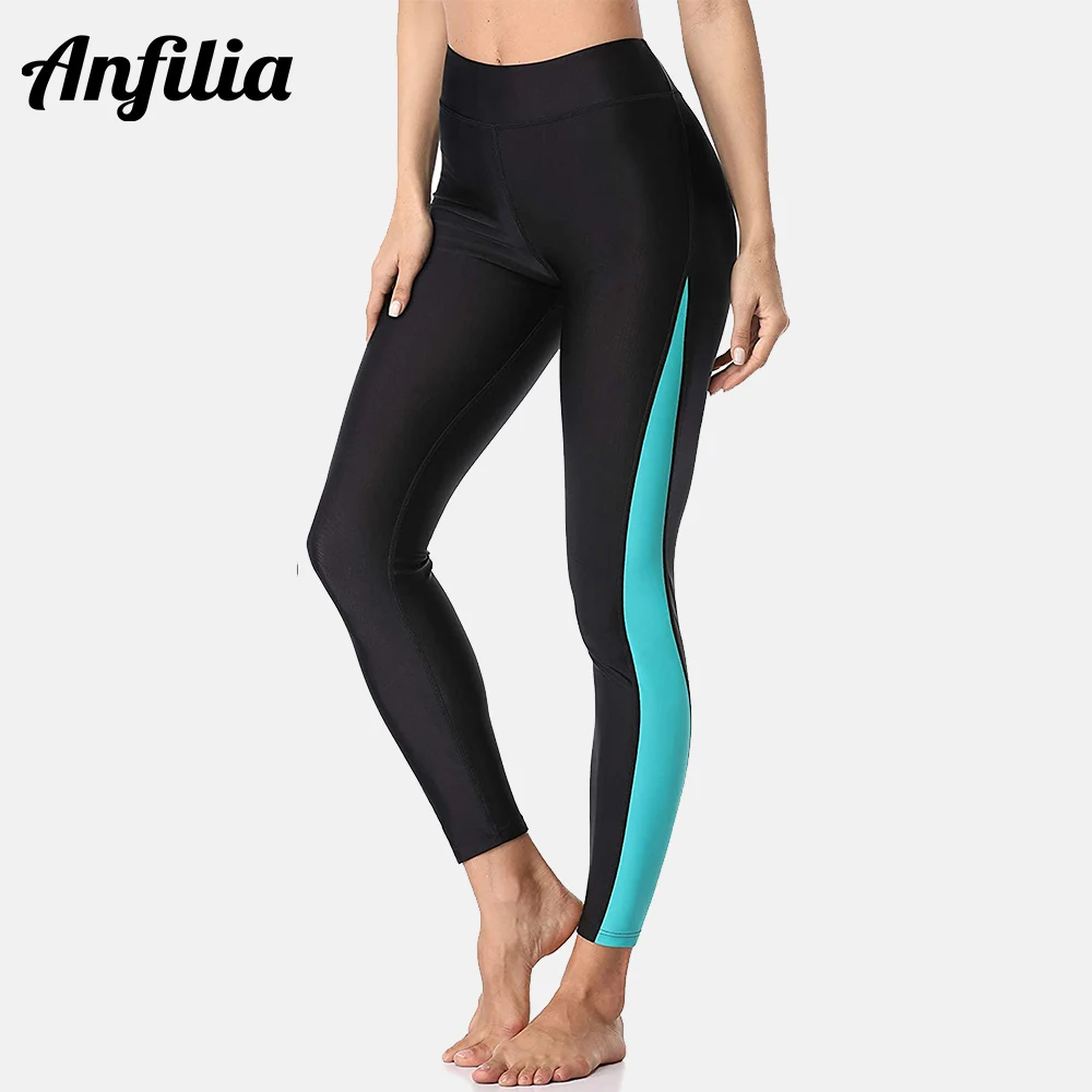 Женские штаны для плавания Anfilia, цветные штаны с высокой талией, леггинсы для плавания, трико для плавания
