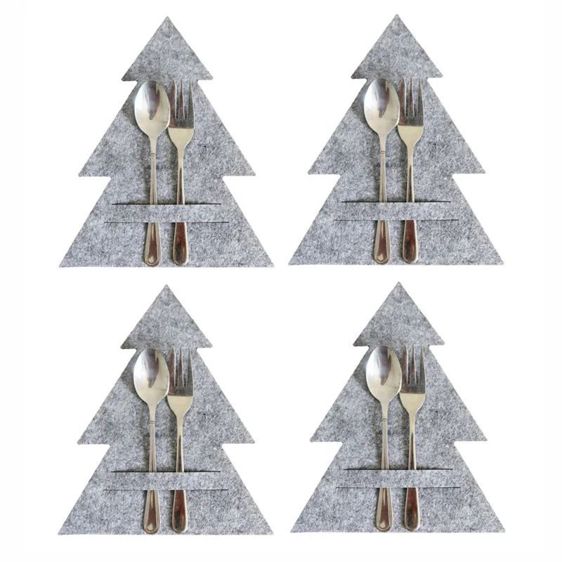 4 шт. серая Рождественская елка посуда для вилок и ножей сумка держатель мешочек для столовых приборов карман крышка для рождественские вечерние Декор