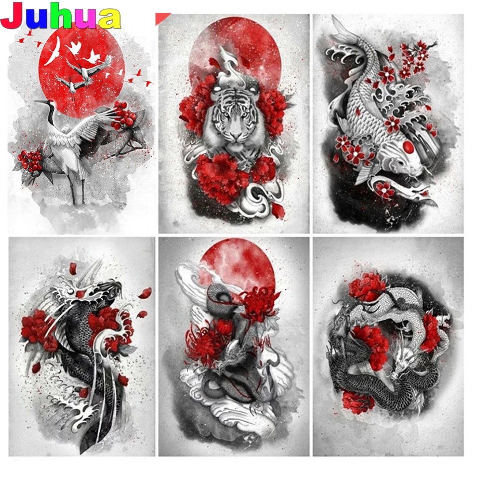 Японский стиль Тигр рыба журавль полная квадратная круглая Алмазная вышивка 5D Сделай Сам Японские животные алмазная живопись Вышивка Мозаика Декор