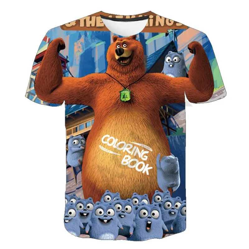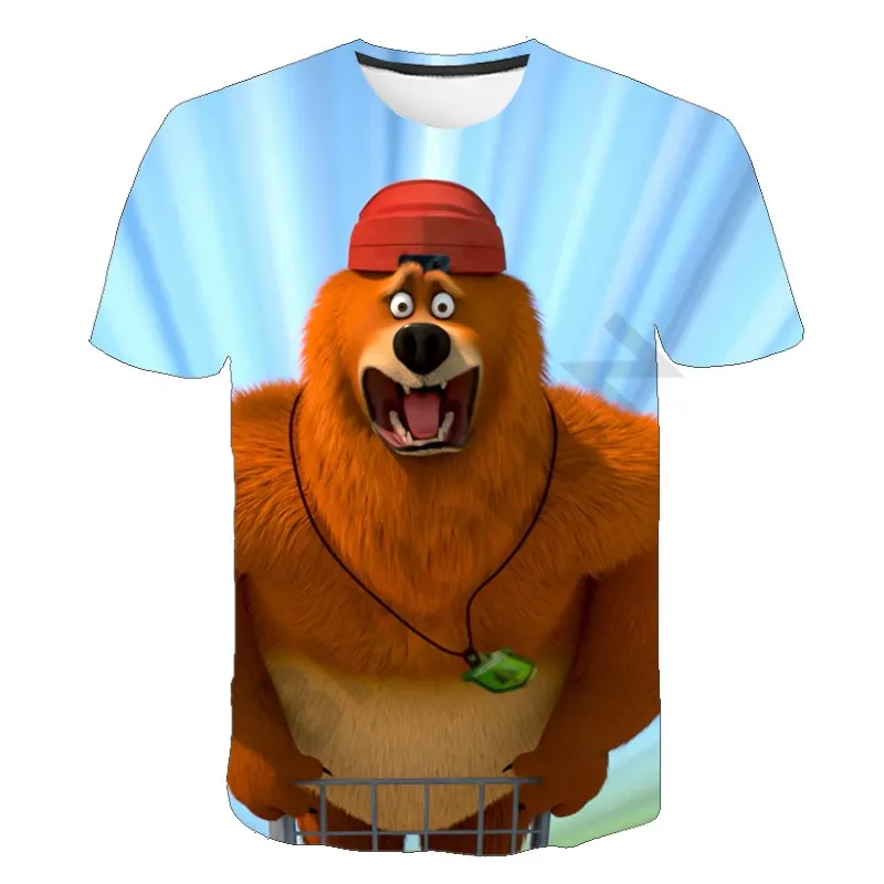 Футболка для девочек и мальчиков, с забавным принтом медведя