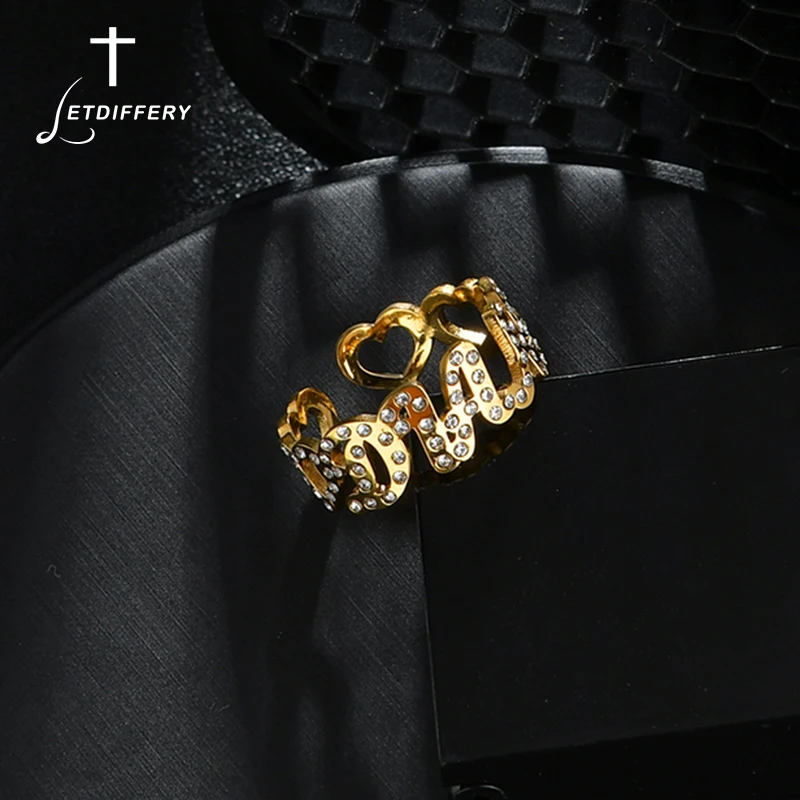 Letdiffery на заказ циркон камень геометрические буквы сердце кольца для женщин из нержавеющей стали Свадебные Роскошные ювелирные изделия для помолвки подарки