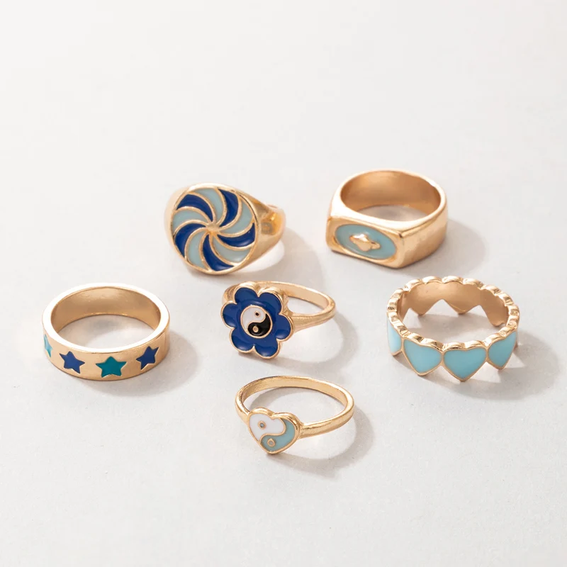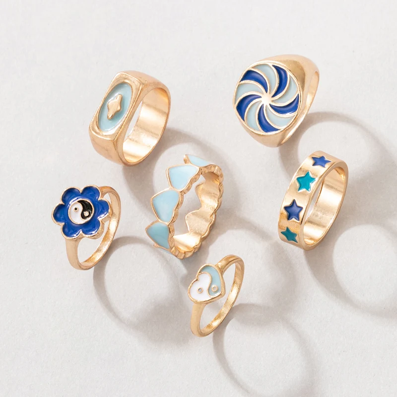 Кольцо Tocona 6 шт.компл. с цветами, Тай Чи, сердцем, Симпатичные кольца для женщин и мужчин, подвески, звезда, золотой сплав, металлические ювелирные изделия для вечеринки, кольца 20090