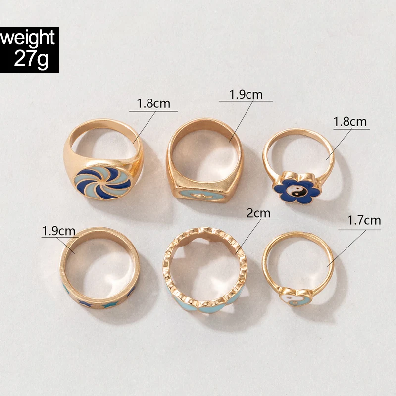 Набор милых колец 6 шт.компл. с цветами, Тай Чи, сердцем для женщин...