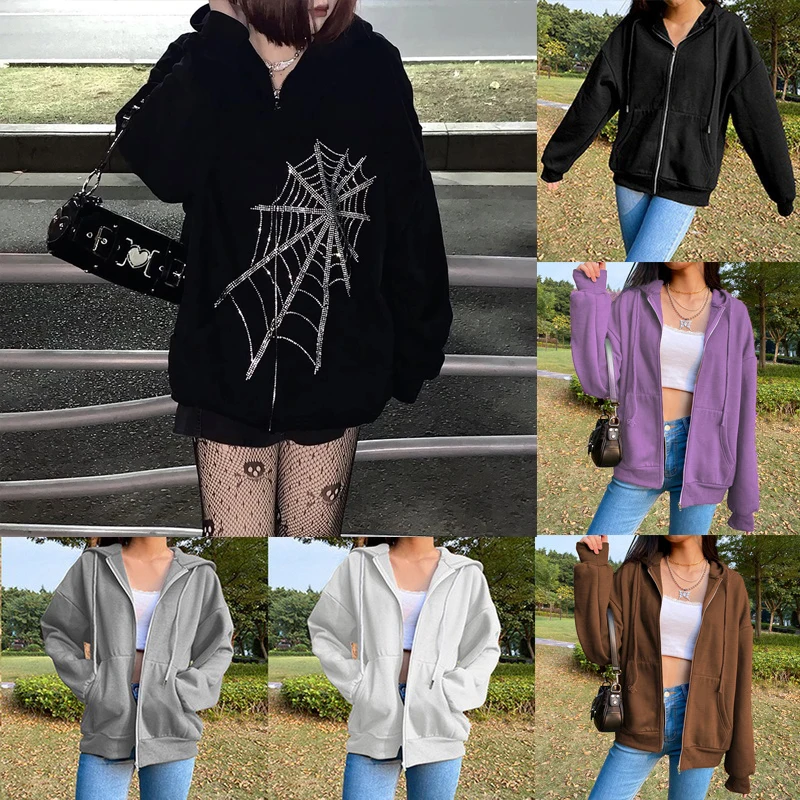 Стразы Cobweb женские толстовки на молнии Готическая свободная улич...