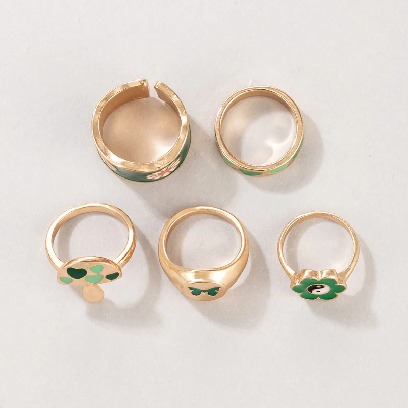 Комплект колец Tocona 5 шт.компл. с зеленым грибом бабочкой для женщин и мужчин, Открытое кольцо с милым сердцем, праздничные украшения Anillo 20091