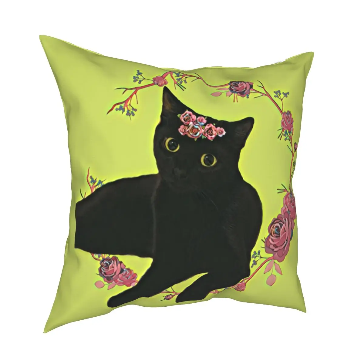 Подушки в форме короны чехол с изображением черной кошки в цветочек, симпатичная кошечка, подушки для влюбленных животных, гениальные декоративные подушки для кровати 40*40 см