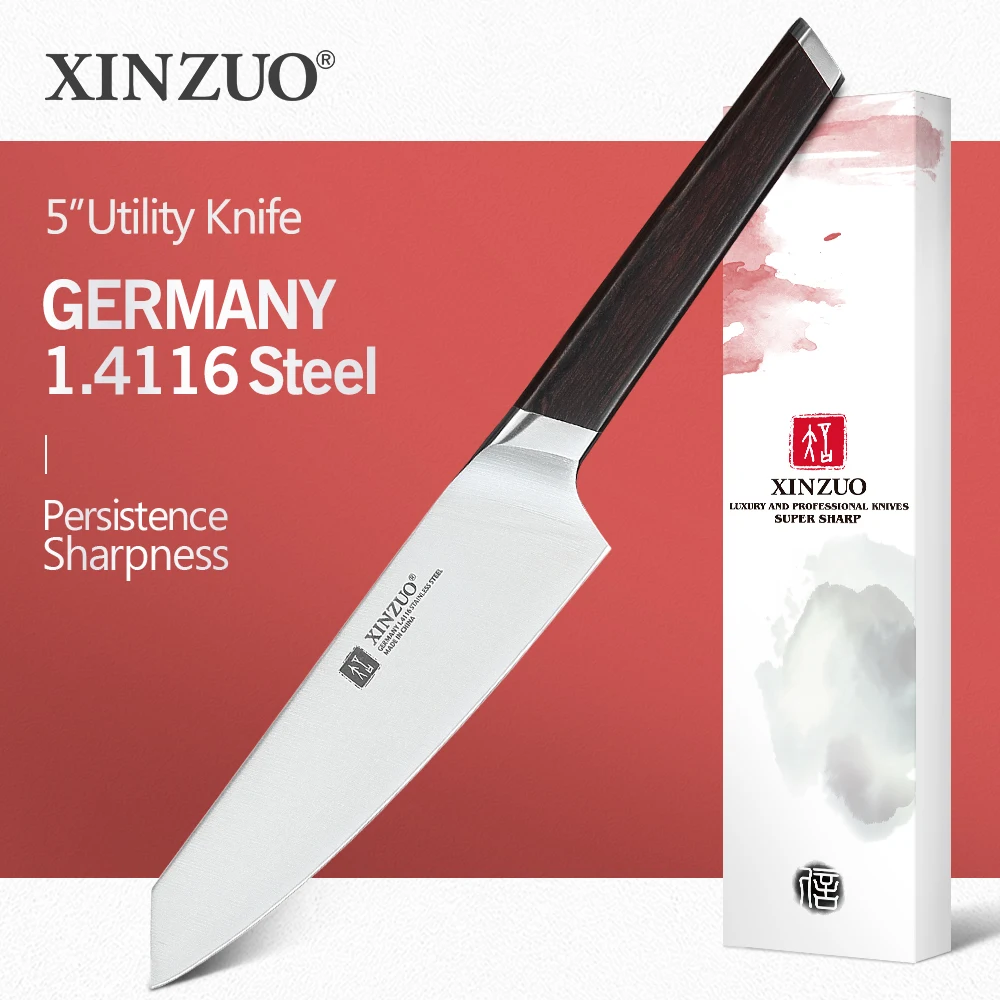 Универсальный кухонный нож XINZUO, 5 дюймов, Германия, 1.4116, стальные инструменты для приготовления пищи, острые ножи для пилинга с ручкой из черного дерева