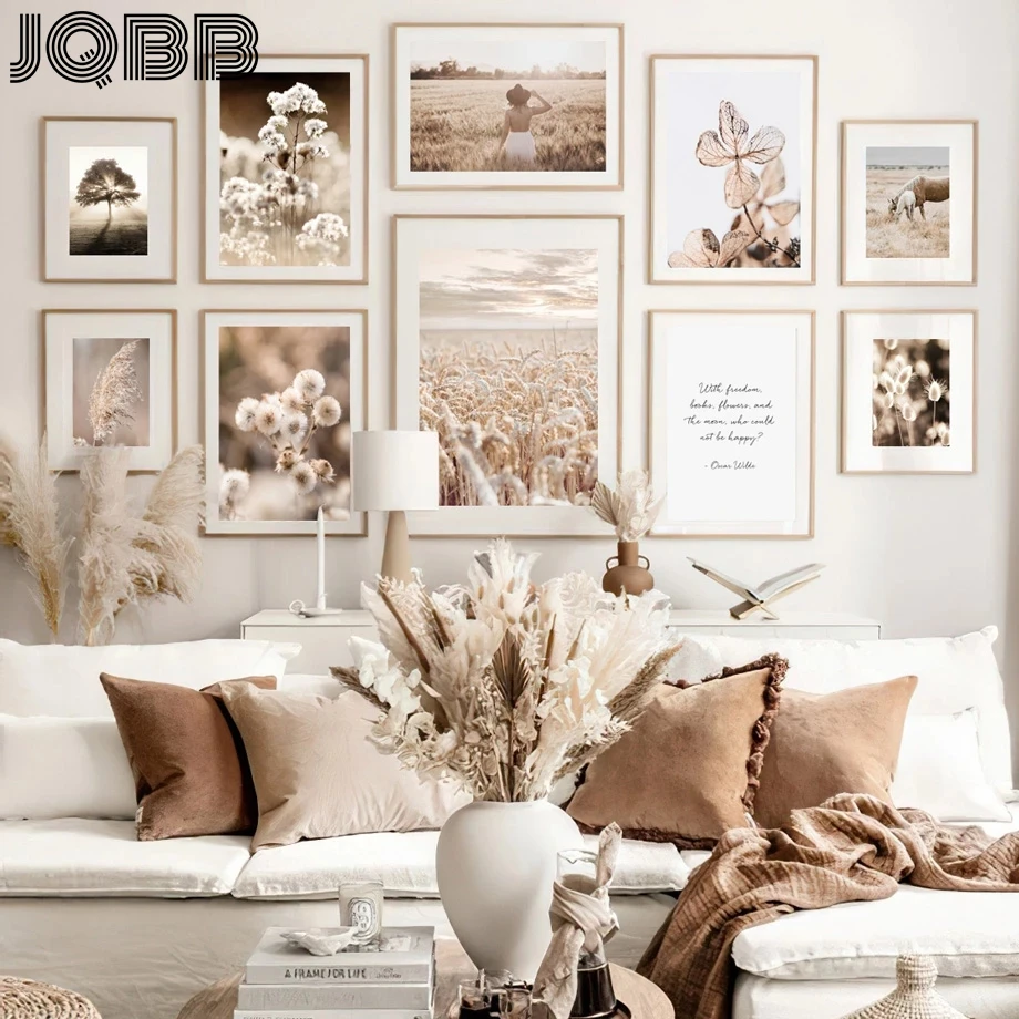 Пони птица девушка Пшеница тростник дикое растение Настенная Картина на холсте скандинавские постеры и принты настенные картины для гостиной домашний декор