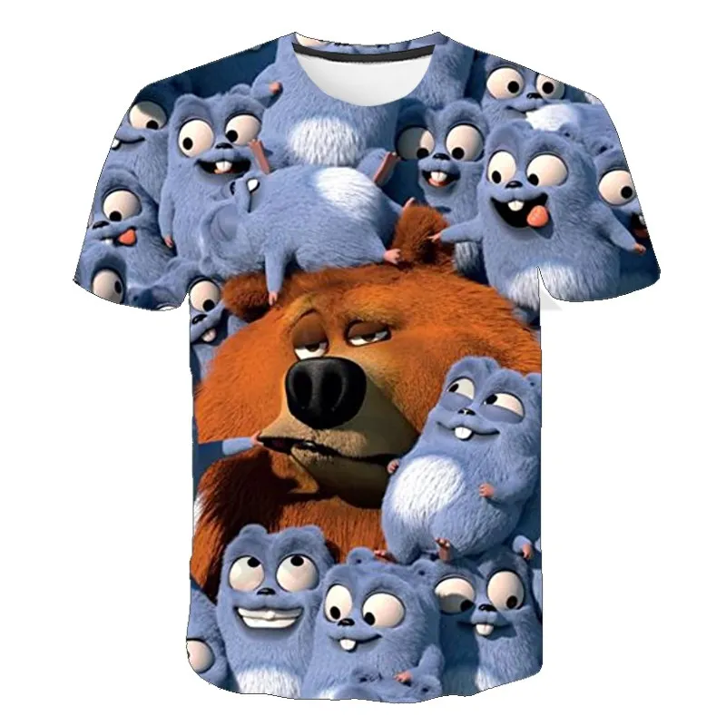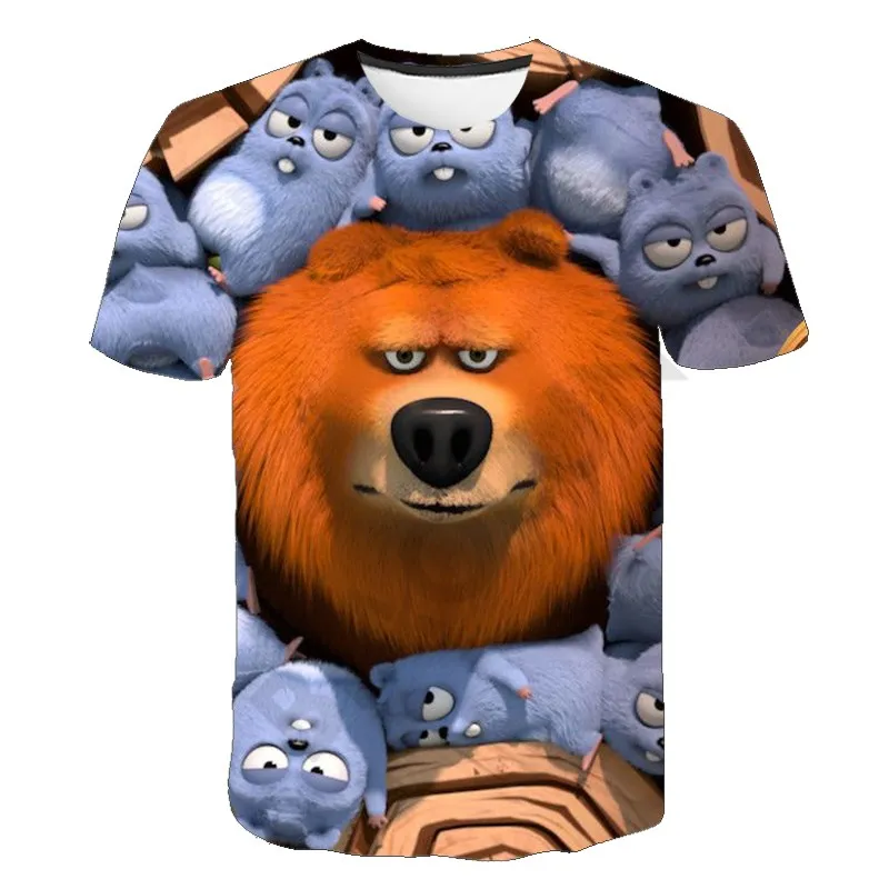 Футболка для девочек и мальчиков, с забавным принтом медведя