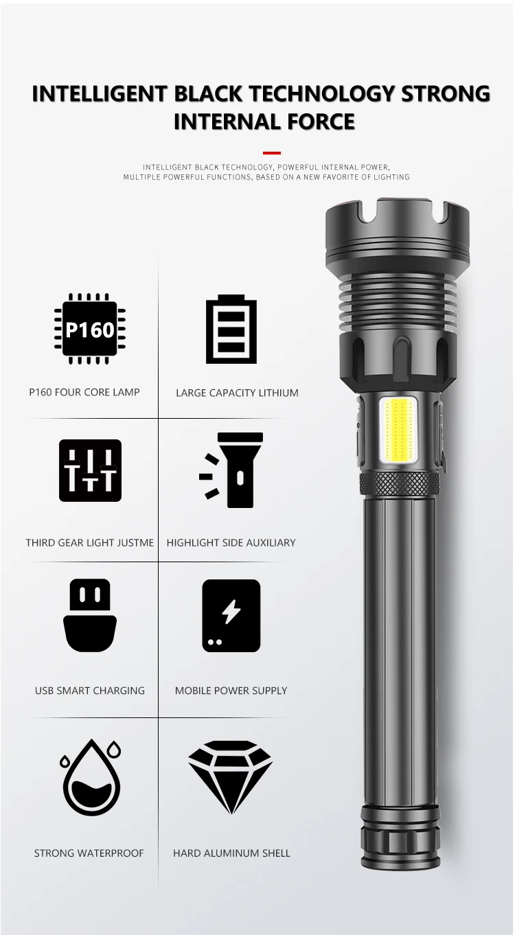 Алюминиевый фонарик XHP100 Коб 9-core светодиодный фонарик Powerban...