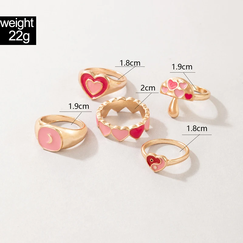 Комплект колец Tocona с милым розовым сердцем для женщин и девушек, ювелирные изделия в стиле геометрия в стиле бохо с грибом Тай Чи и Ян, аксессуары Anillo 19984