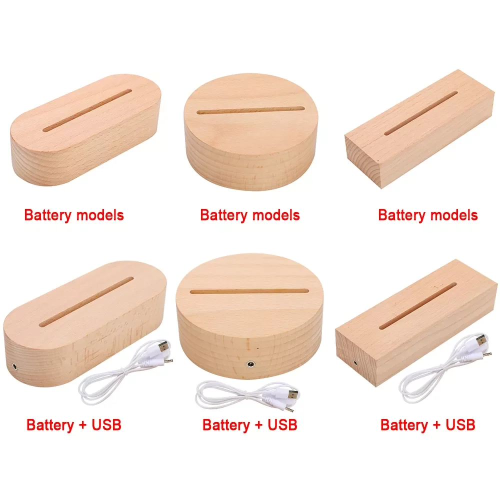 3D деревянная основа для лампы, светодиодный настольный ночник, основа для акриловой лампы с теплым белым светом, держатель светильник лампы, аксессуары, монтажная светодиодная основа 2021 USB