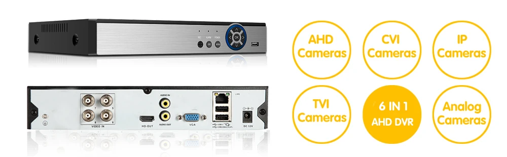 AHD DVR HVR NVR 6 in1Support AHD/Analog/TVI/CVI/IP Camera