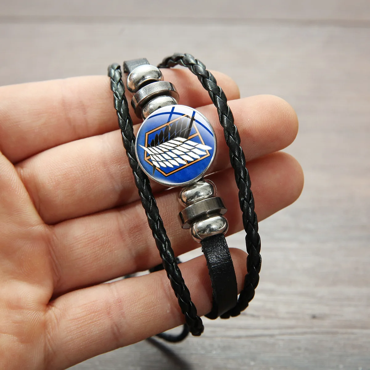Регулируемый Черный многослойный браслет с кнопками для аниме Attack On титановый браслет Wings Of Libery