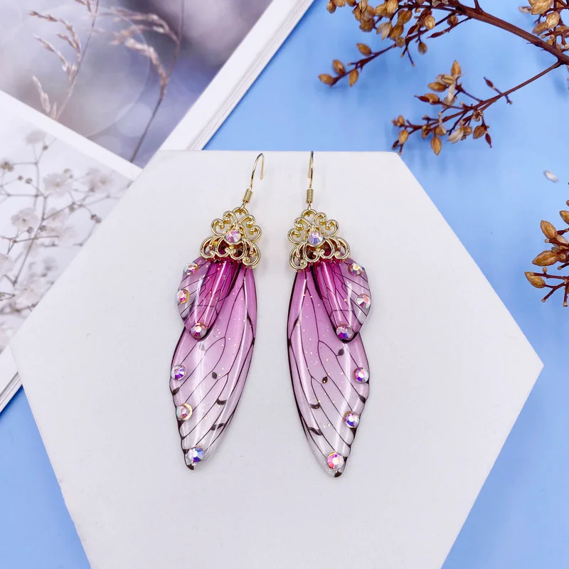 Модные женские висячие серьги ручной работы с крыльями фиолетовая с...