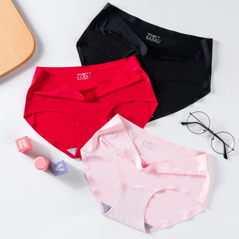 Трусы женские бесшовные, 3 шт.лот, однотонные, со средней посадкой,...