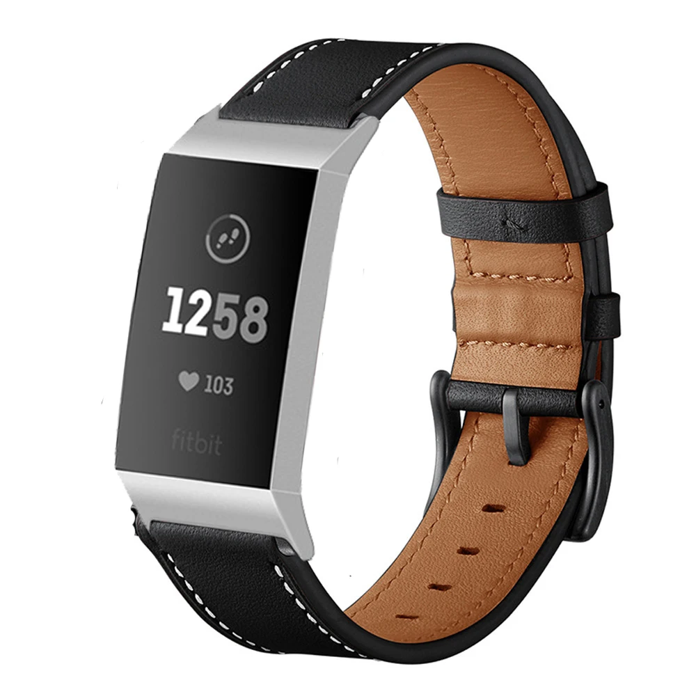 Ремешки из натуральной кожи для Fitbit Charge 3 2 Charge 3 SE Charge 4, классические Сменные аксессуары, цвет черный
