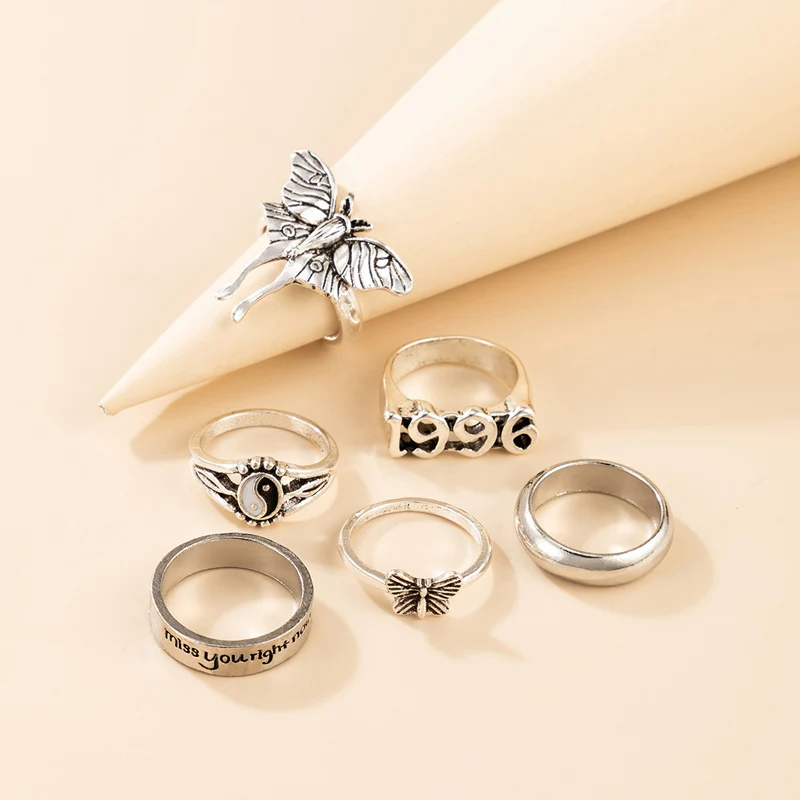 Набор Колец Tocona, 6 шт.компл., винтажные, серебряная бабочка, с буквами 1996, для женщин, мужчин, парные ювелирные кольца Anillo 19782