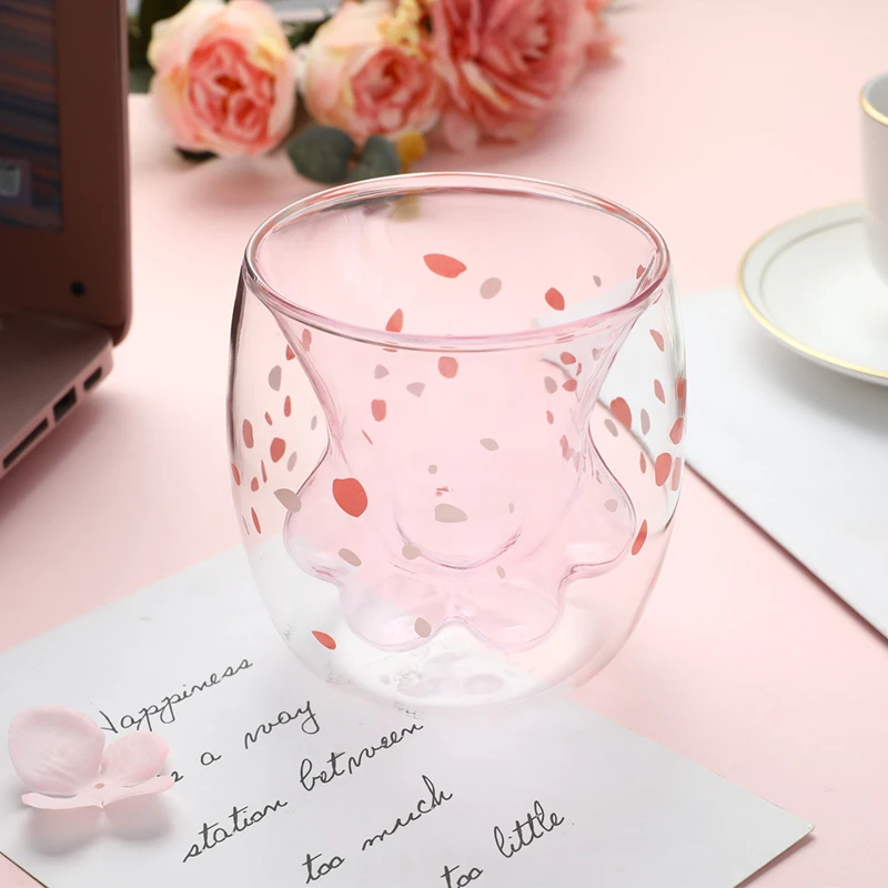 Чашка кошачья лапакошачья лапа, кофейная кружка с двойным стеклом, мультяшный милый кот, чашка для молока, сока, для кафе, 1 шт.
