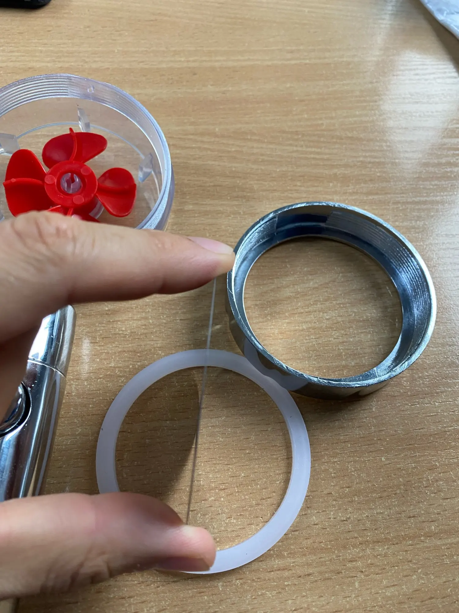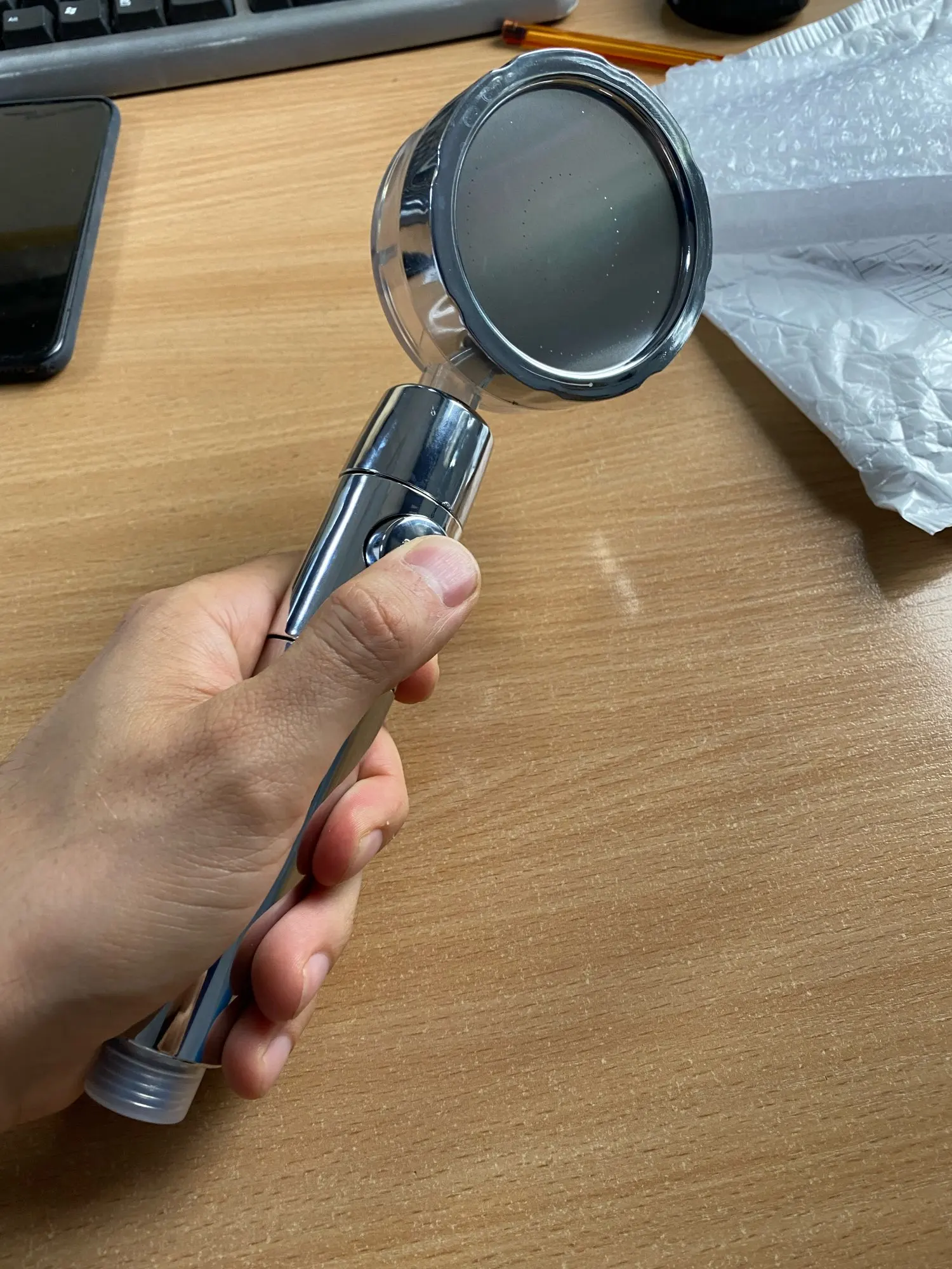 Доставка 20 дней в Украину, Днепр. Фильтра и уплотнительной резинки в комплекте нет. Кнопка по своей сути, немного бесполезна, так как при нормальном давлении ее почему-то заклинивает, вода перекрывается и обратно не включается, та же может сорвать с резьбы и часть под кнопкой отлетает. Напор струи сильный, похоже на душ «шарко», в интимных местах не приятно, нужно уменьшать напор, что в какой-то мере даже плюс - экономия воды. Струя как на картинке - течет в виде сетки. Головка регулируется вправо, влево, вверх, вниз. Вентилятор внутри крутится. В размере - довольно таки не маленькая. В целом хорошая лейка, выглядит достойно, надеюсь она не рассыпется при падении.