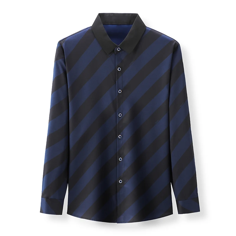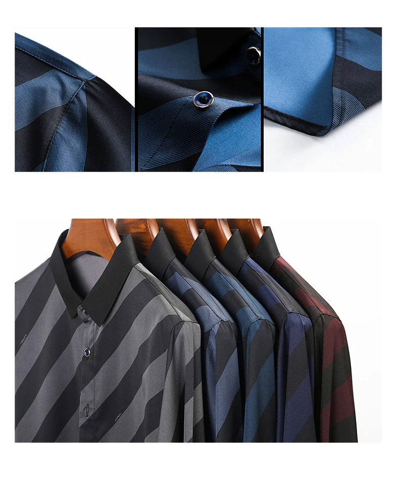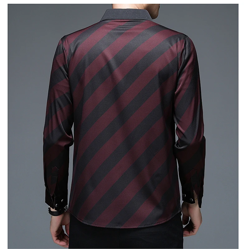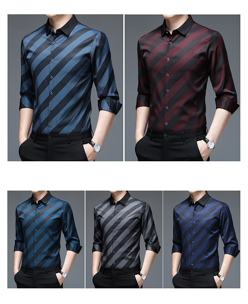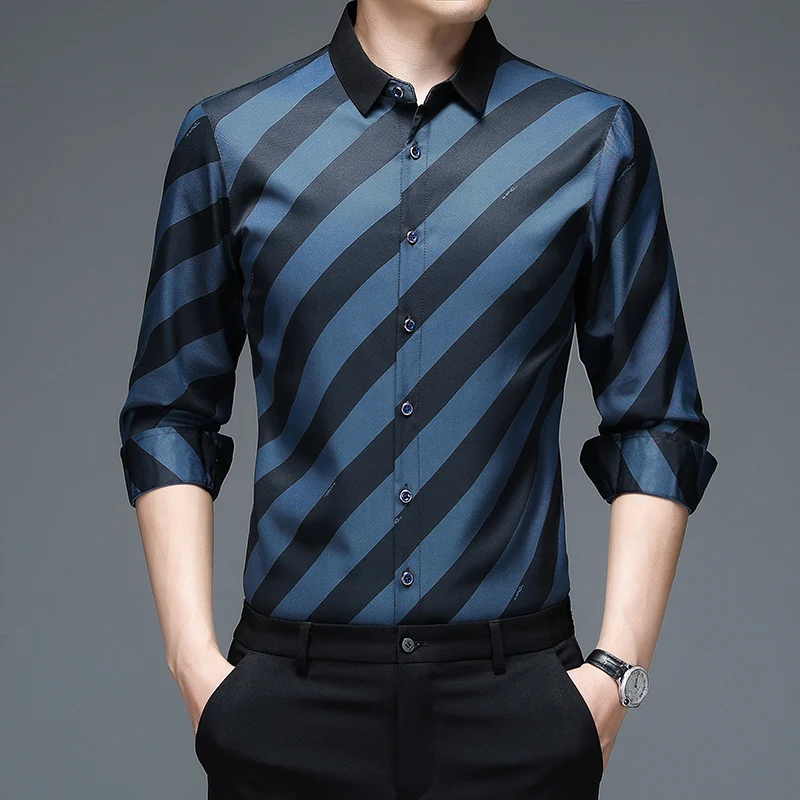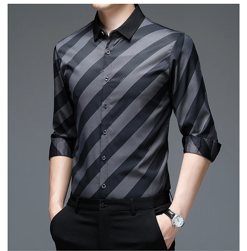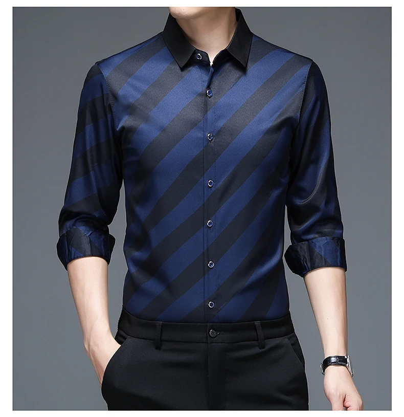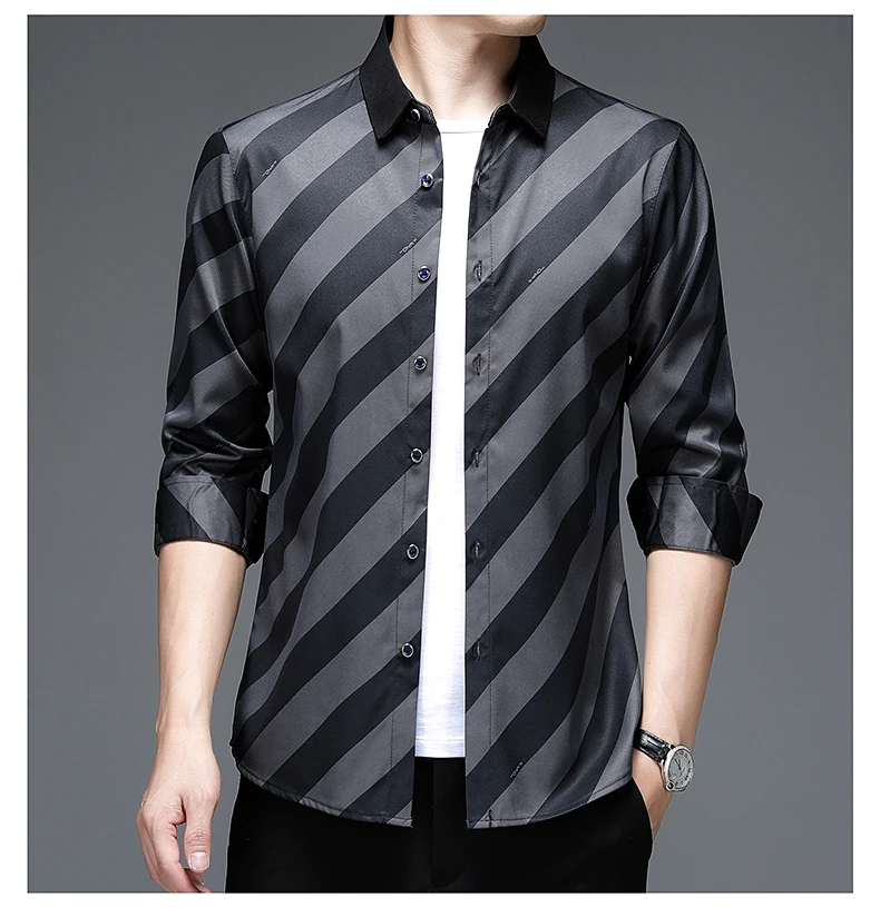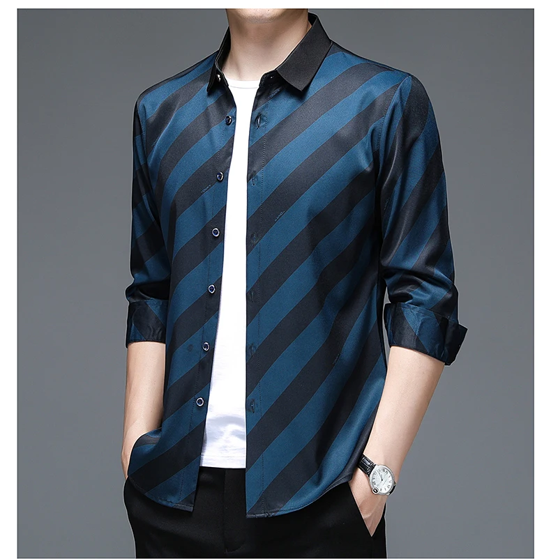Рубашка мужская в полоску, шелковая хлопковая приталенная, с длинным рукавом, повседневная одежда, C791