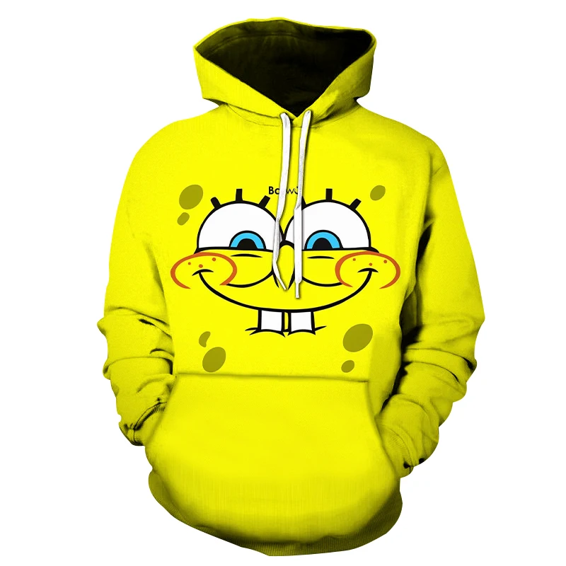 Мужская толстовка с капюшоном, желтого цвета, с 3D-принтом губки, 2021