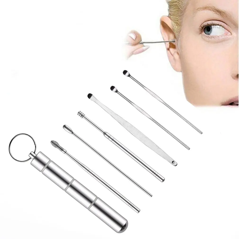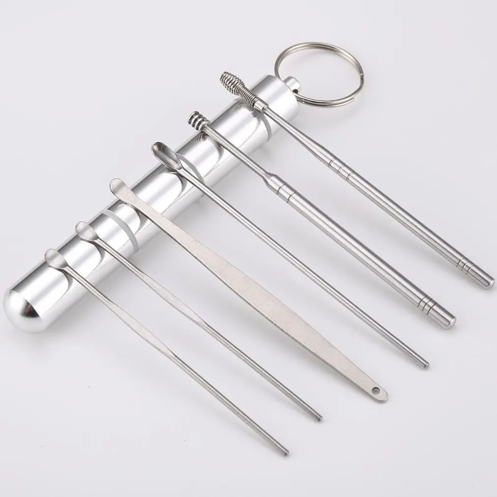 6 шт./набор, Портативный прочный набор из нержавеющей стали для чистки ушей, удалитель ушной серы, очиститель для ушей