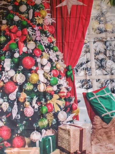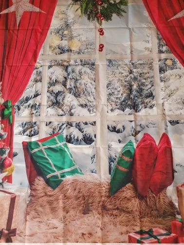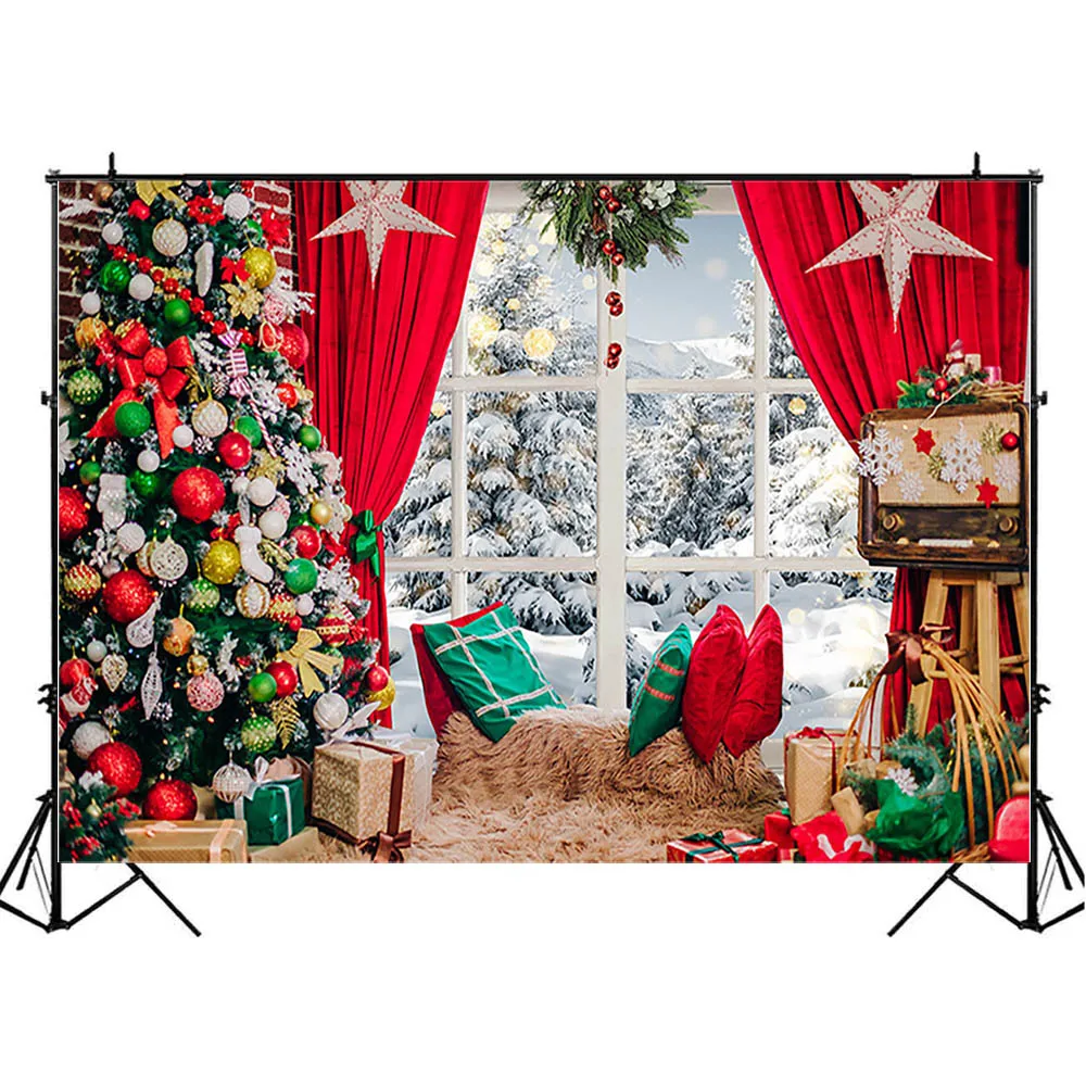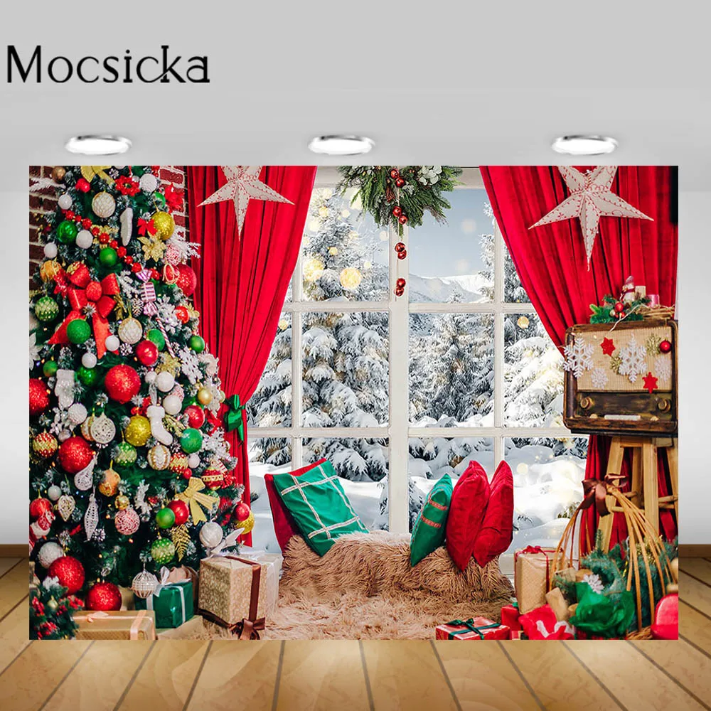 Рождественский фон Mocsicka, украшение, Рождественская елка, мяч, окно, снежный лес, Фотофон, милая домашняя семейная ПОРТРЕТНАЯ ФОТОГРАФИЯ