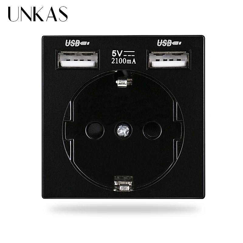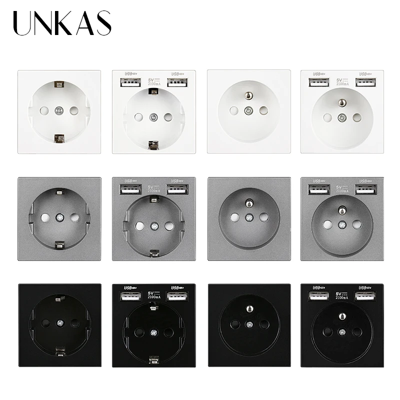 UNKAS B8 модули DIY Бесплатная комбинация Новый ЕС/Французский 16А настенная розетка двойной usb-порт для зарядки Скрытая мягкая светодиодная розетка