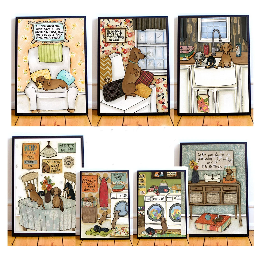Мультяшный милый щенок, корги, Такса, холст, картина для детской ко...