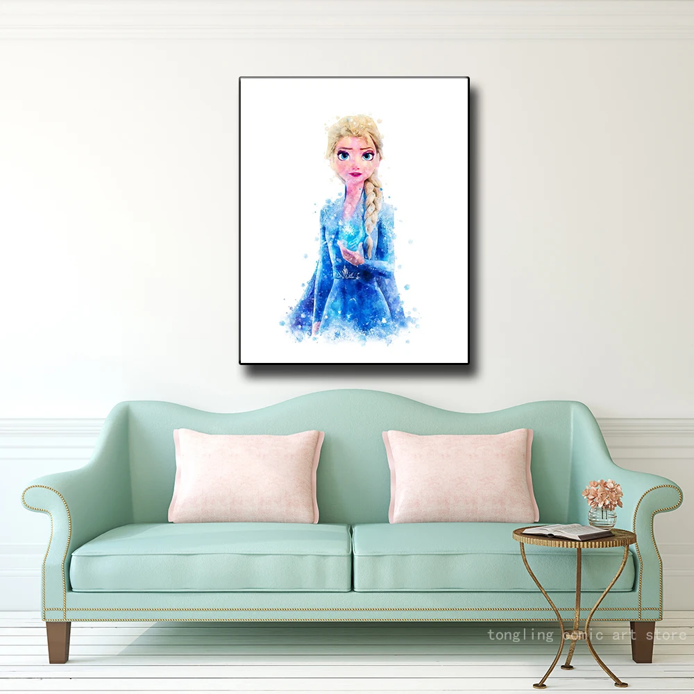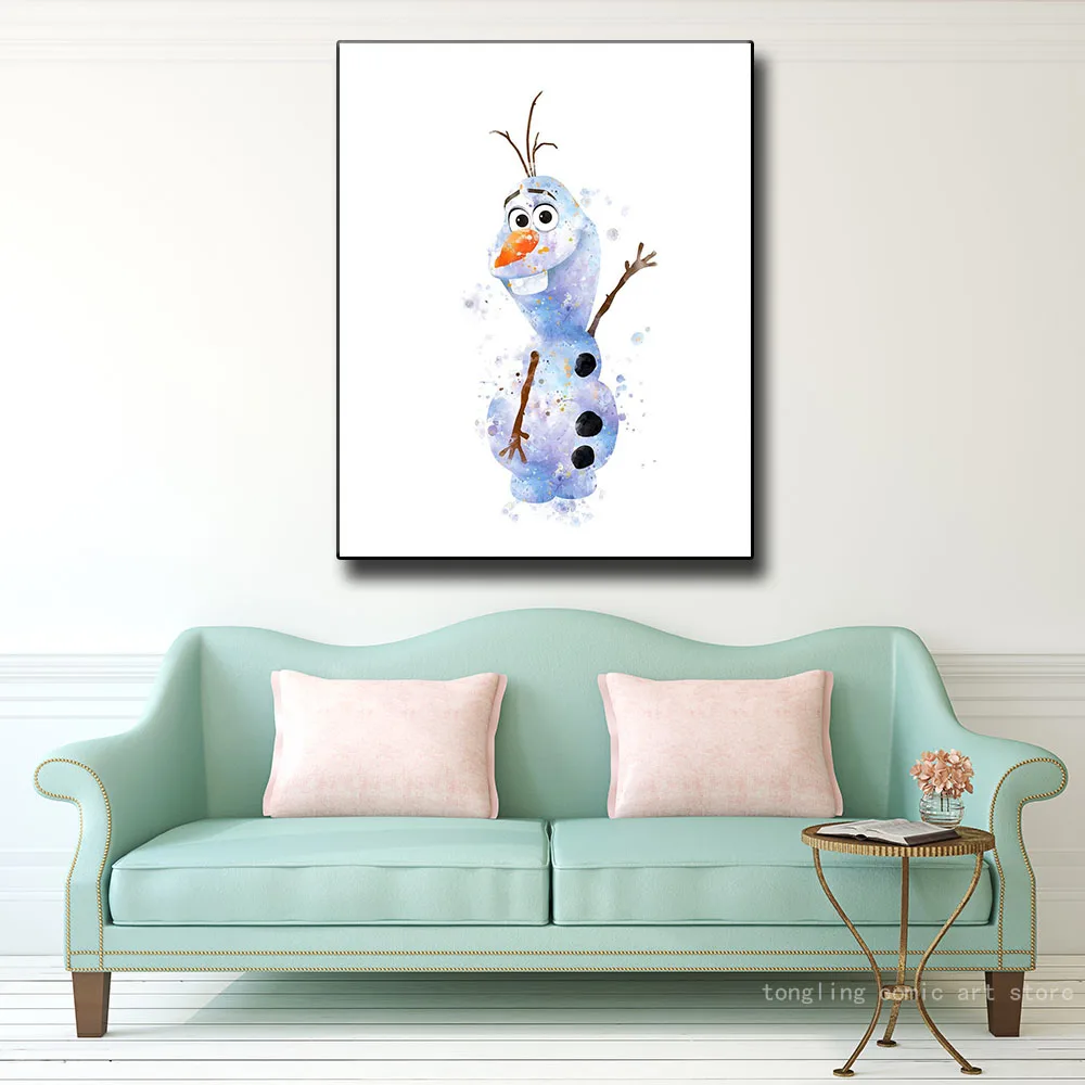 Набор "Холодное сердце" с принтом принцессы Анны и Эльзы, Олаф, Свен Кристофф, Брюни, саламандра, акварельная картина на холсте для детей, декор для комнаты