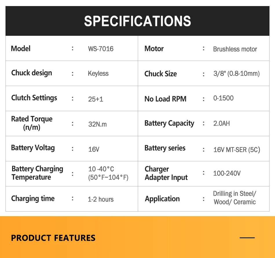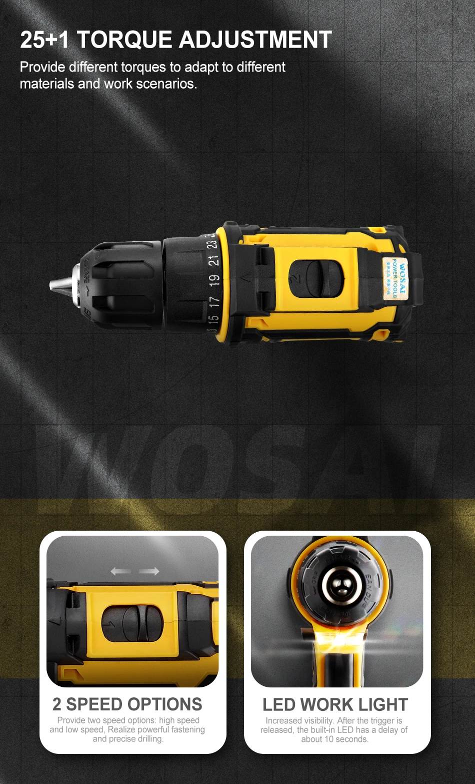Шуруповерт VVOSAI, 16 в MAX, 25 + 1 настройки крутящего момента, 2 скорости, 32 Н м, бесколлекторный, аккумуляторный, электроинструменты серии MT