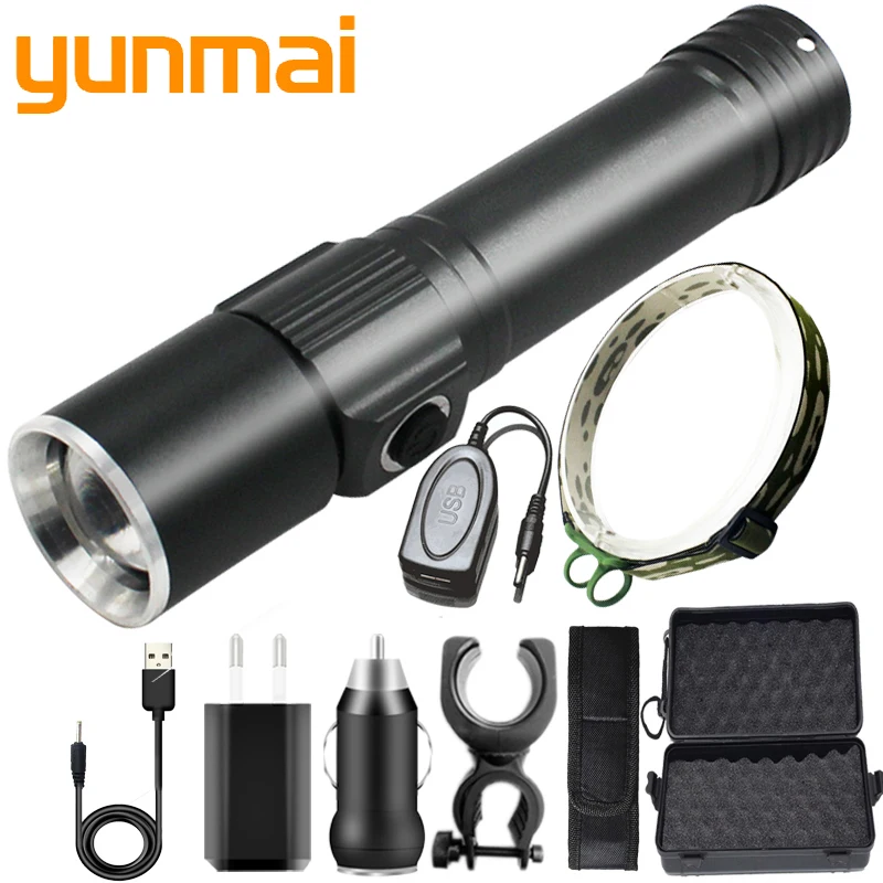 XM-L T6 USB перезаряжаемая Задняя светодиодный светодиодсветильник вспышка рабочий светильник фонарик XP-G Q5 Фонарь 18650 батарея зум Алюминий Водонепроницаемый