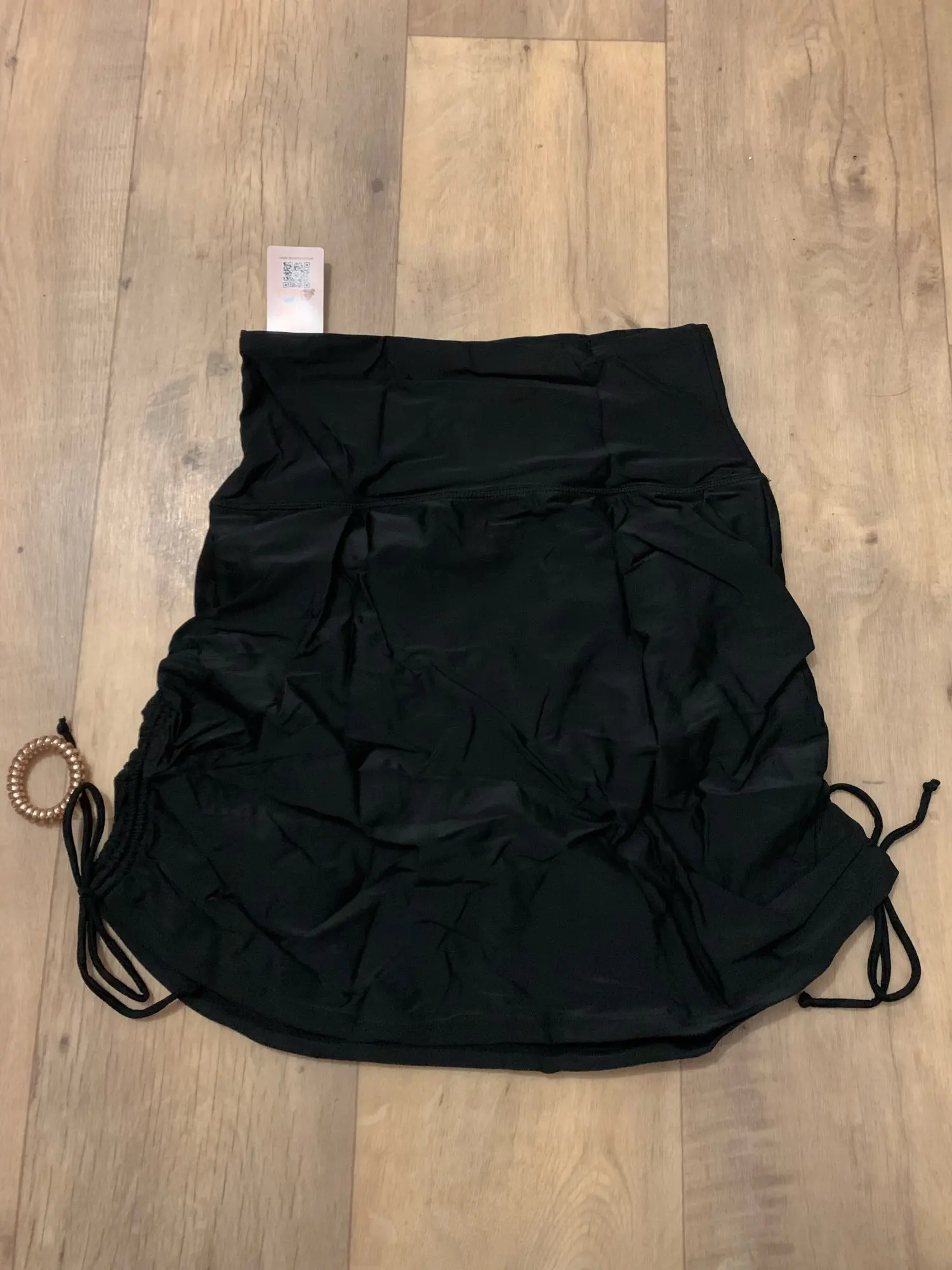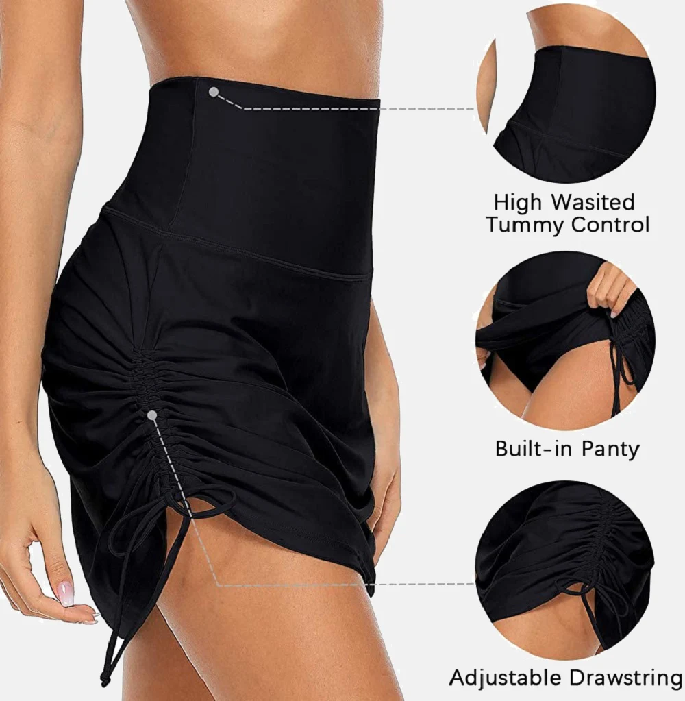 Пришла в срок. Хорошее качество. На размер 42-44(российский) юбка сидит плотно.а бикини под юбкой чуть свободно. В подарок положили резинку.