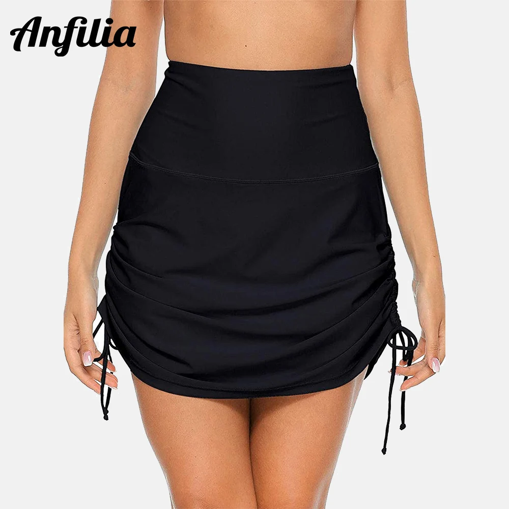 Женский купальник с юбкой Anfilia, слитные Трусики-бикини с высокой талией и завязками, с рюшами, купальник