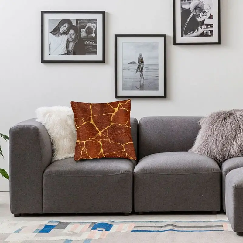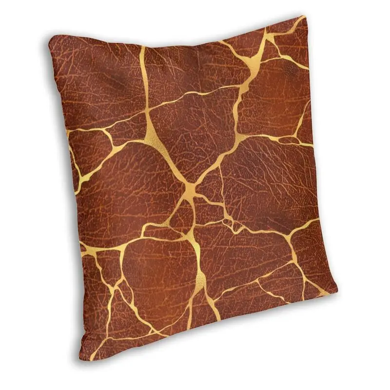 Коричневая Кожаная наволочка с рисунком Kintsugi 40x40, декоративная наволочка для подушки, чехол с 3D принтом, винтажная текстура, наволочка для дивана