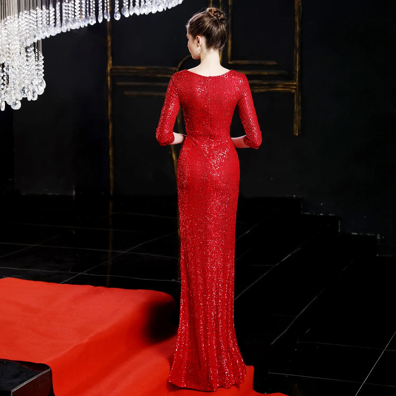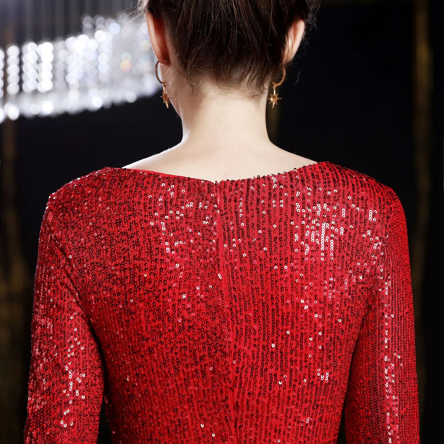 Женское вечернее платье с блестками, элегантное облегающее красное ...