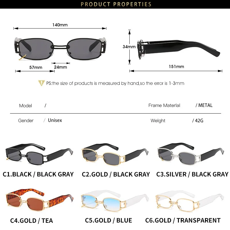 Солнечные очки INS в стиле панк для мужчин и женщин, модные маленькие прямоугольные солнцезащитные аксессуары в винтажном стиле, с металлической оправой