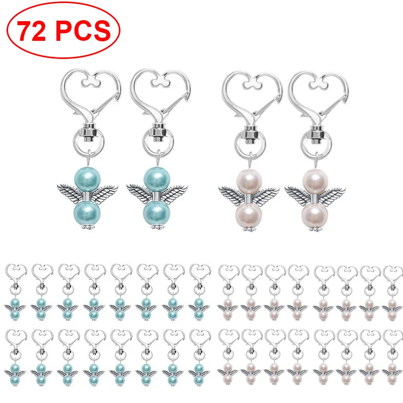 72 шт. креативные брелоки, набор для свадебной вечеринки, сетчатый чехол для хранения, брелки, крылья ангела, подвесная бирка, карты, держатель для ключей, подарок