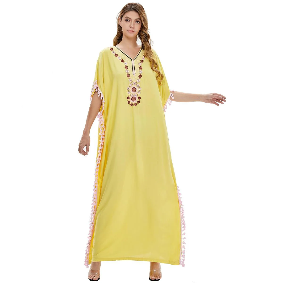 Мусульманское платье Дубай абайя для женщин, вечерние платья Бангладеш, кафтан, Турецкая Пакистанская одежда, мусульманская одежда с кисточками PW200