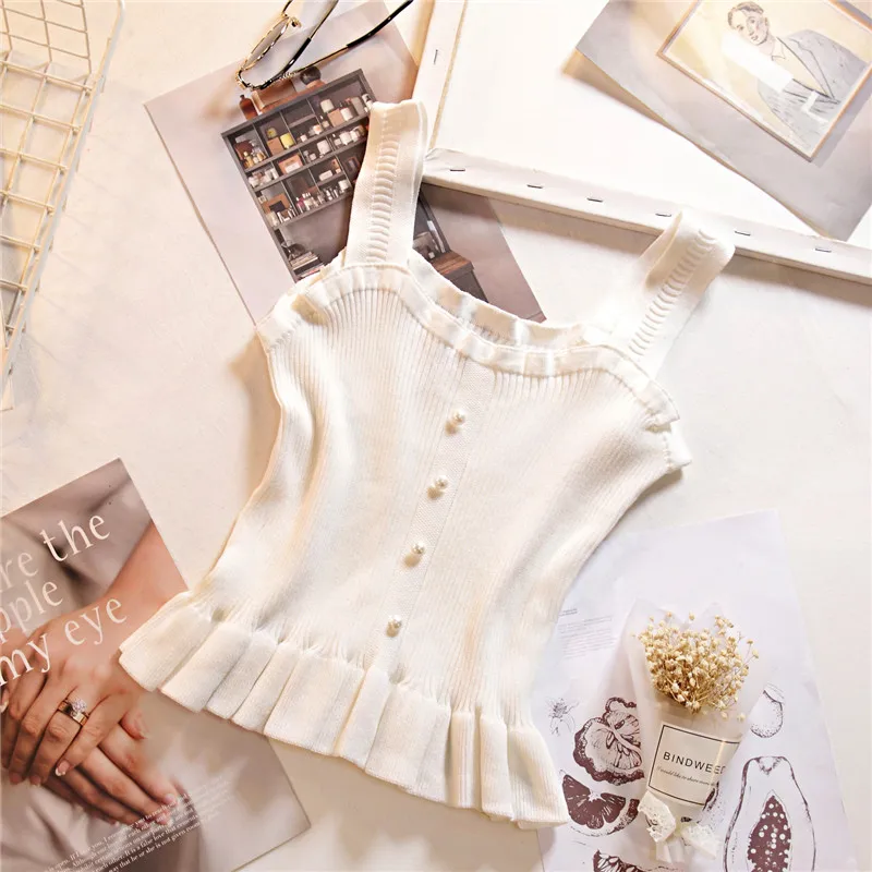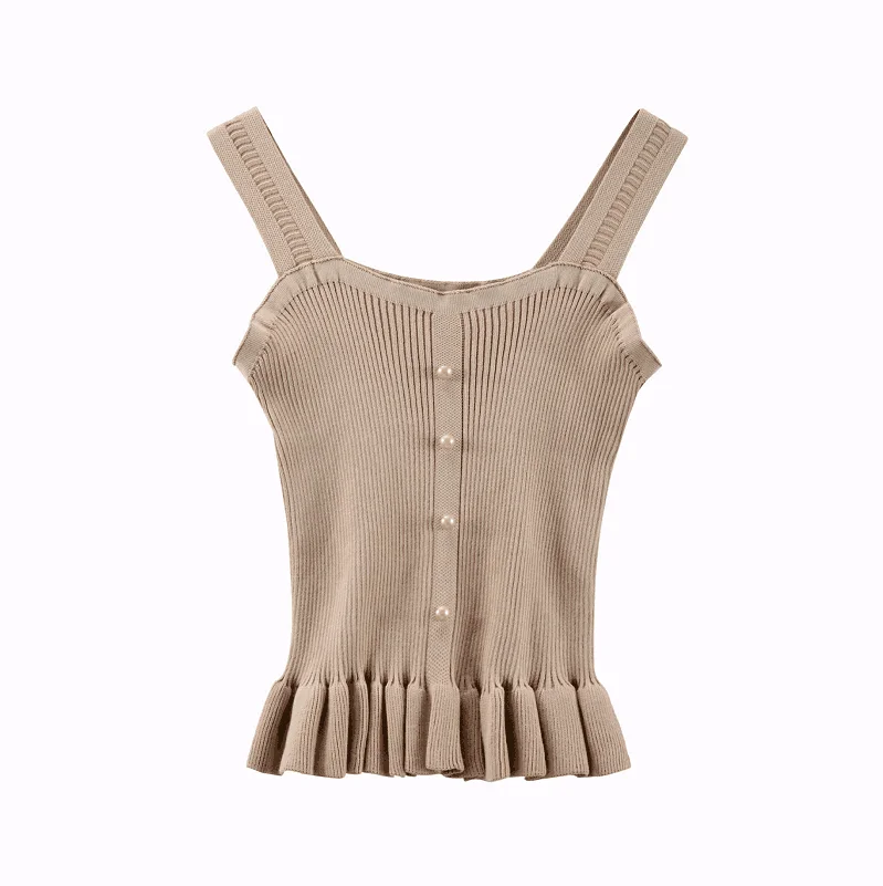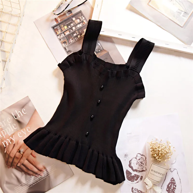 Женский ТРИКОТАЖНЫЙ УКОРОЧЕННЫЙ ТОП Heliar, топ без рукавов с оборк...
